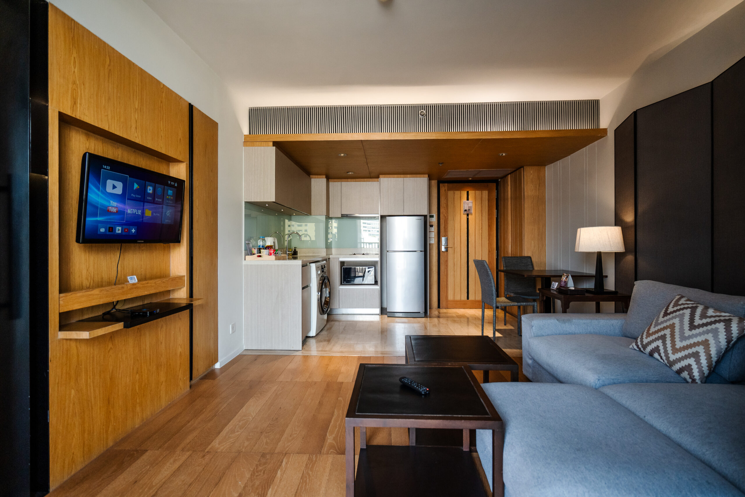スイートルームは、39平方メートルのワンベッドルームスーペリアから、広々とした66平方メートルのツーベッドルームスイートまで多彩なタイプをご用意。各部屋にはキッチン設備、洗濯機・乾燥機、ゆったりとしたリビングスペースが完備されており、長期滞在にも最適です。さらに、薄型テレビや高速Wi-Fi、バスタブとシャワーが独立したバスルームなど、快適さを追求した設備が整っています。