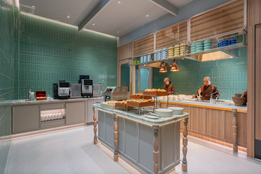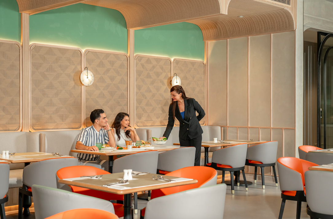 料理面では、ライブで調理される卵料理やヌードルステーションがある 無料の朝食サービス、タイ料理や中東料理、インド料理、西洋のコンフ ォートフードを提供する「1947キッチン」の終日営業、そして手軽に 利用できる「ザ・マーケット」もあります。ルーフトップの「エア・バ ー」では、パノラマの街並みを眺めながらリラックスでき、多彩なドリ ンクや軽食を楽しめます。