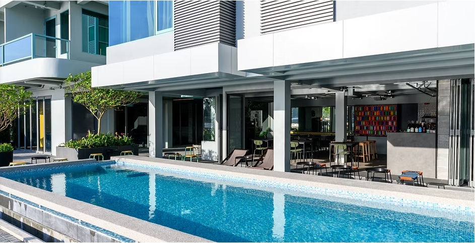 屋外の塩水プールでひと泳 ぎしたり、併設のレストラン&バーでドリンクを楽しんだりと、滞在中の リラックスタイムも充実。空港送迎、ランドリーサービス、ビジネスセン ターなど、旅行者に嬉しいサービスも揃っています。