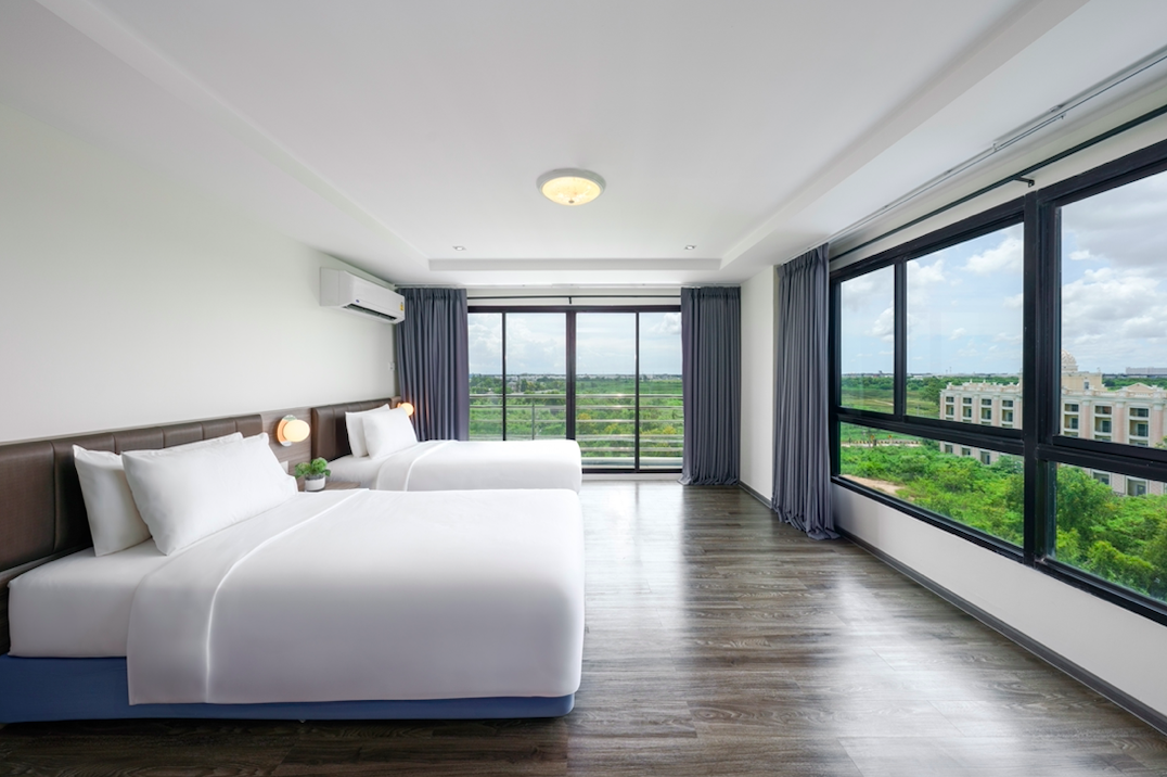 サムットプラカーンに位置する現代的なホテルで、スワンナプーム国際 空港から車で約30分。ビジネスにもレジャーにも最適で、33〜60平方 メートルの快適な客室とスイートを全196室完備しています。ファミリ ールームは最大4名まで宿泊可能で、ジュニアスイートには独立したリ ビングエリアがあり、より快適な滞在を提供します。