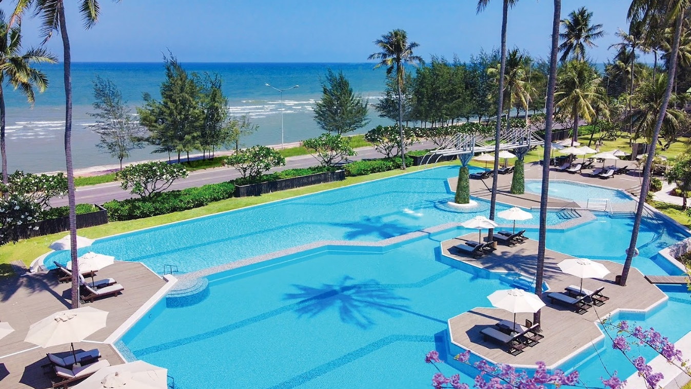 温德姆華欣プランブリは、広々とした客室とプール付きヴィラ、オーシャンフロントダイニング、熱帯庭園、スパトリートメントを備え、静かなタイ東海岸の優雅な滞在を提供します