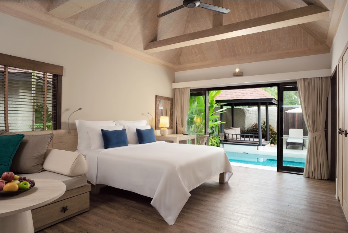 リゾートには広々とした客室とヴィラが揃っており、どの客室もモダンな快適さ、プライベートテラス、そして自然環境と調和した落ち着いたインテリアが丁寧にデザインされています。多くのヴィラにはプライベートプールが備わっており、ゲストは静かな贅沢のひとときを楽しむことができます。