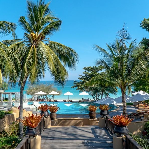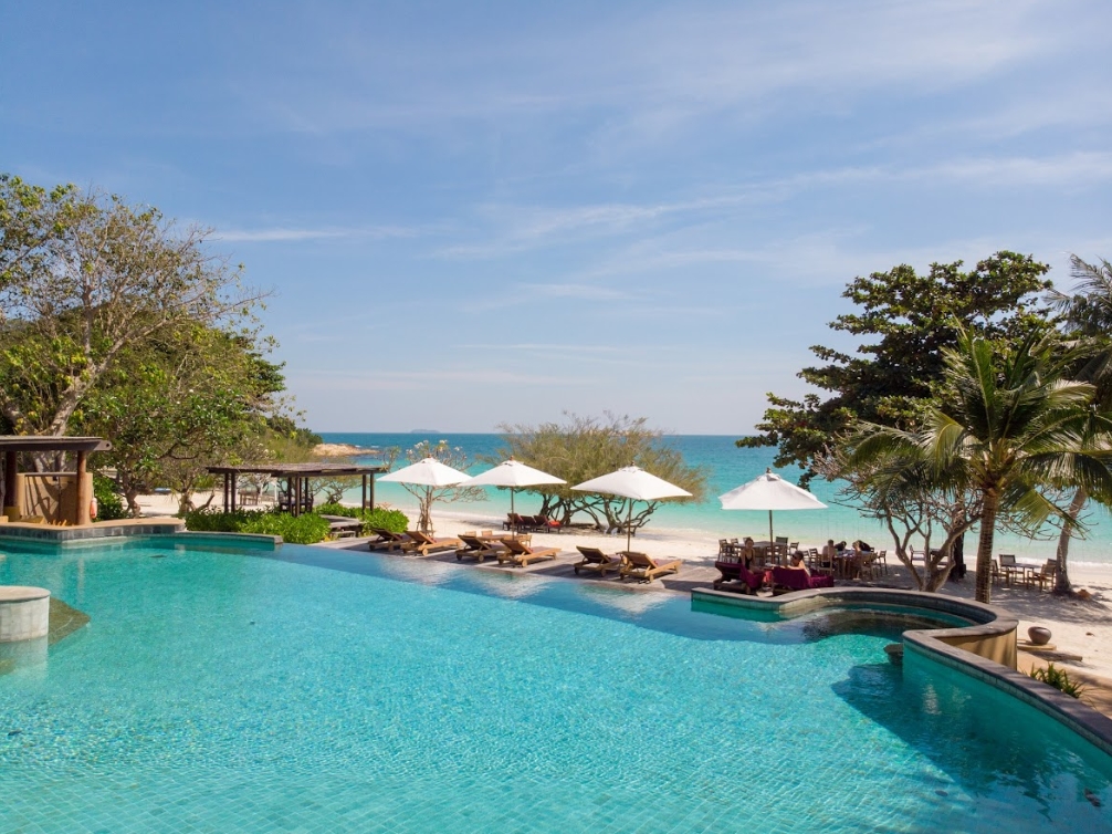リゾートの中心にあるインフィニティプールは、まるでタイ湾と一体化したかのような開放感を与えてくれます。ビーチフロントレストランでは、洗練されたタイ料理と国際色豊かなメニューを堪能。さらに西側のビーチを見下ろす岩の上に建つ「サンセットバー」では、夕暮れの空を染める絶景を眺めながらのカクテルタイムが、旅をより特別な思い出にしてくれます。
